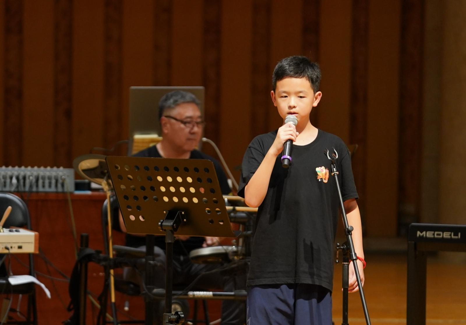 “此刻的我正在舞台上发光,找到属于自己的前方。”中山公园音乐堂的舞台上,即将上初二年级的郭正诚弹着吉他,唱着自己新写的歌。和他站上同一舞台的十余位青少年,同样拿着各自的乐器自信歌唱。