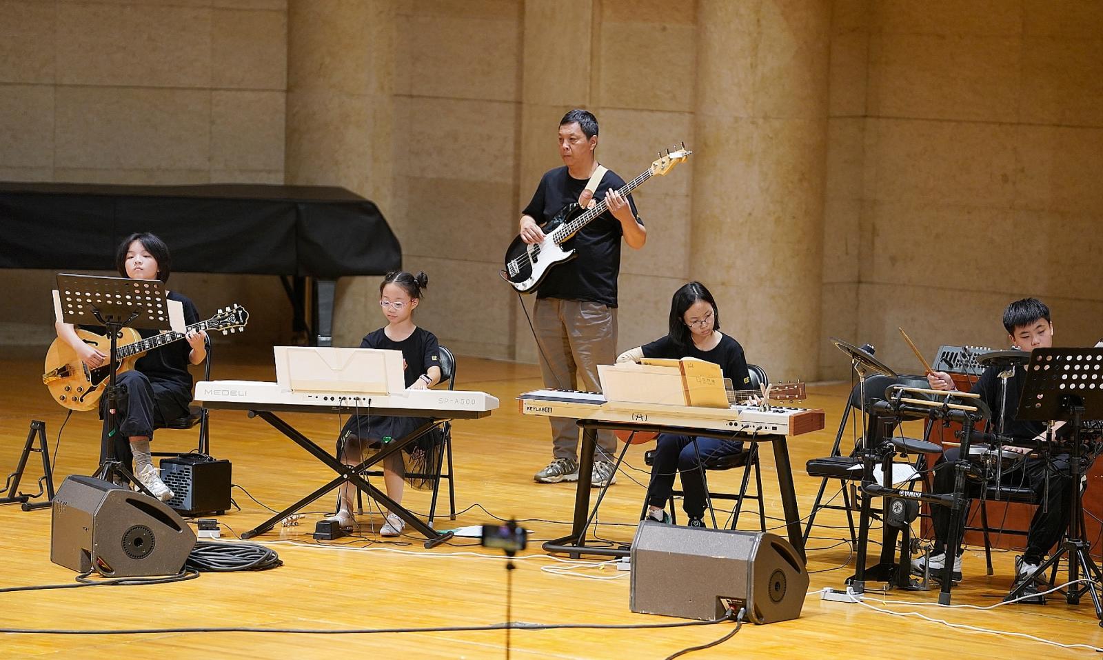 器乐合奏夏令营中,孩子们在舞台上进行乐队表演。北京日报客户端记者 方非摄